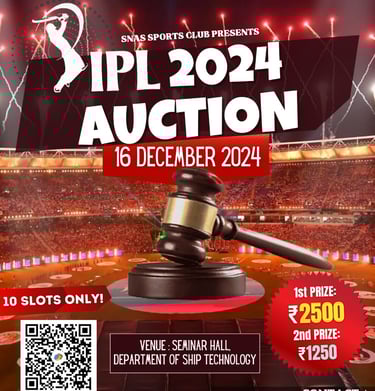 The Department of Ship Technology’s student association, SNAS, organized an electrifying IPL Auction event in the Seminar Hall, drawing enthusiastic participation from across CUSAT. Eight teams representing various departments stepped into the shoes of franchise owners, bringing strategy, excitement, and a healthy dose of friendly rivalry to the competition. The atmosphere was vibrant as students engaged in intense bidding wars, carefully planning their budget and picking players who could maximize their team’s overall performance.